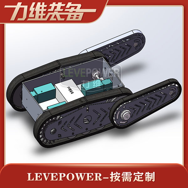 此款底盤為一款機器人履帶底盤,結(jié)構(gòu)箱體整體采用鋁合金板材拼接而成,帶兩個擺臂為了在爬樓梯或者攀爬其他障礙物的情況下更平穩(wěn)的通過。整體重量在80kg左右,輕巧,靈活,行駛速度2km每小時。